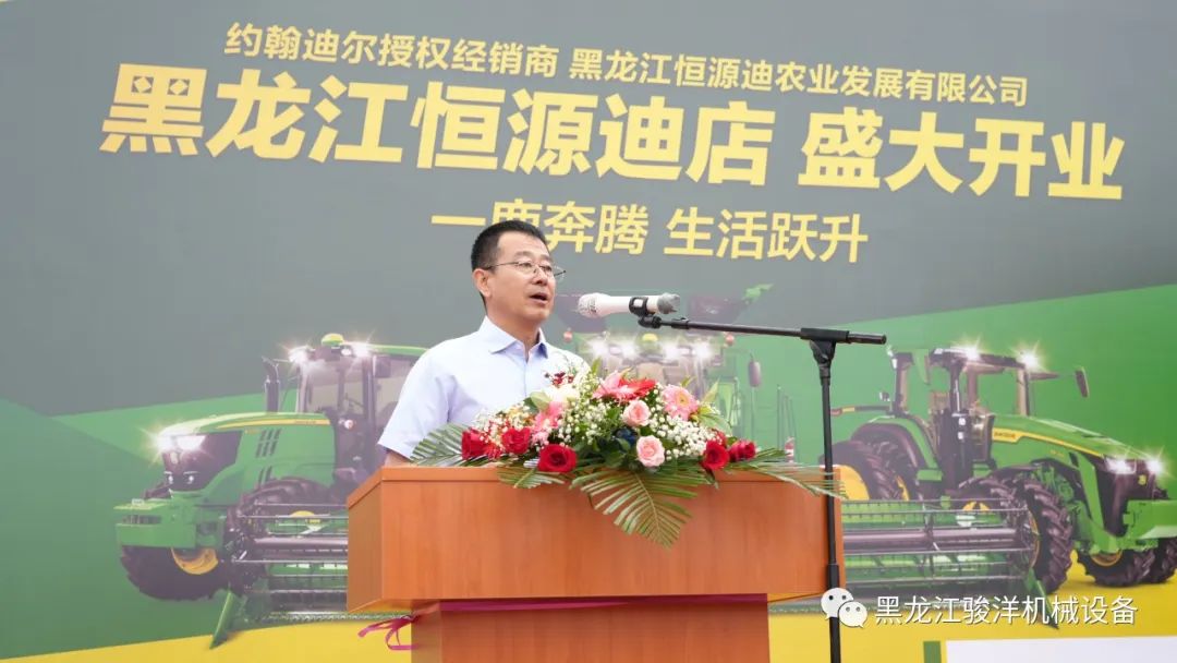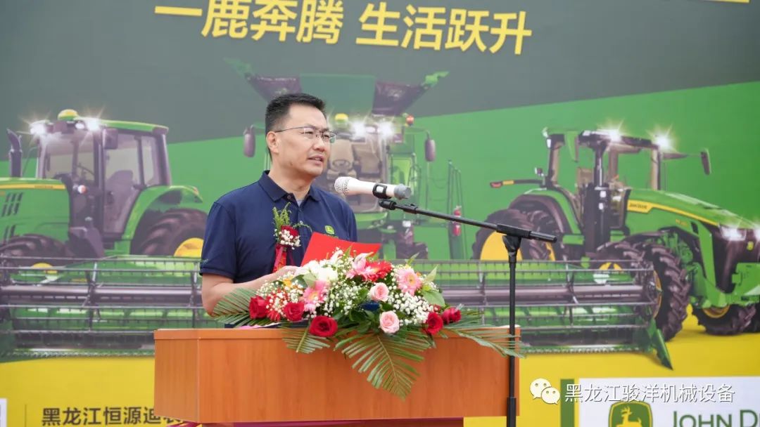 黑龍江恒源迪農(nóng)業(yè)發(fā)展有限公司總經(jīng)理杜立志發(fā)表了開場致辭(下圖)。他表示,作為迪爾授權(quán)經(jīng)銷商,恒源迪農(nóng)業(yè)將不負約翰迪爾公司和用戶朋友的信任與期待,砥礪前行、全心全力的將迪爾品牌的核心價值觀“誠實、優(yōu)質(zhì)、守信、創(chuàng)新”發(fā)揚光大。公司有著完備的市場推廣、售后服務(wù)、配件供應(yīng)體系和經(jīng)驗,相信會給用戶帶來更好的產(chǎn)品使用體驗,讓用戶創(chuàng)造更大收益,為黑龍江現(xiàn)代農(nóng)業(yè)特別是農(nóng)機現(xiàn)代化的發(fā)展添磚加瓦。